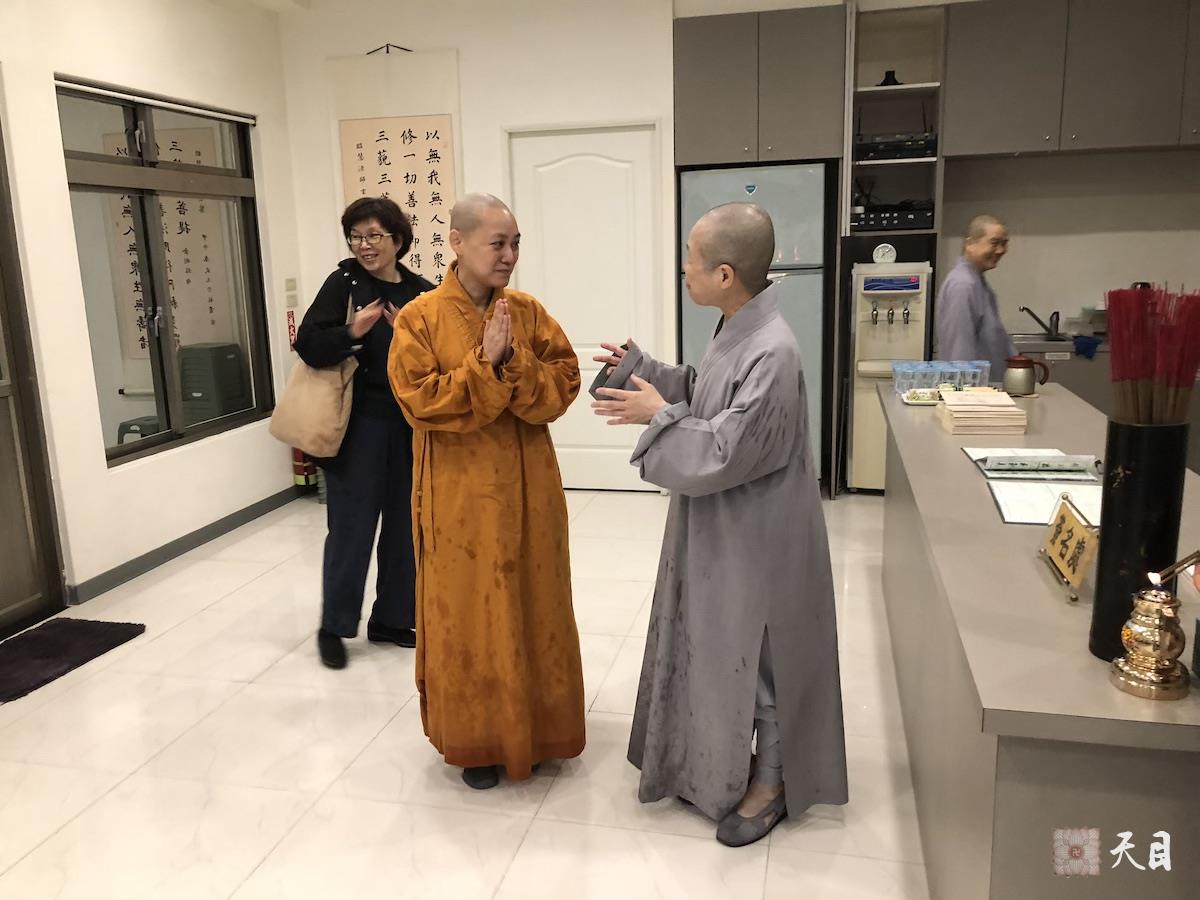 图为果实法师到达弘誓学院涅槃堂拜见昭慧法师。