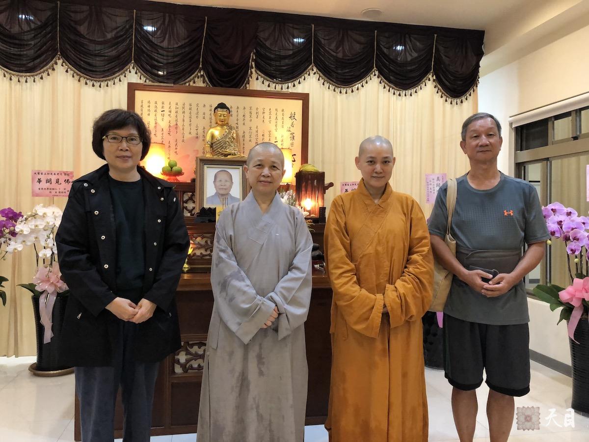 图为昭慧法师和果实法师、果芳居士、常富居士在佛教弘誓学院涅槃堂知光师公莲座前合影。