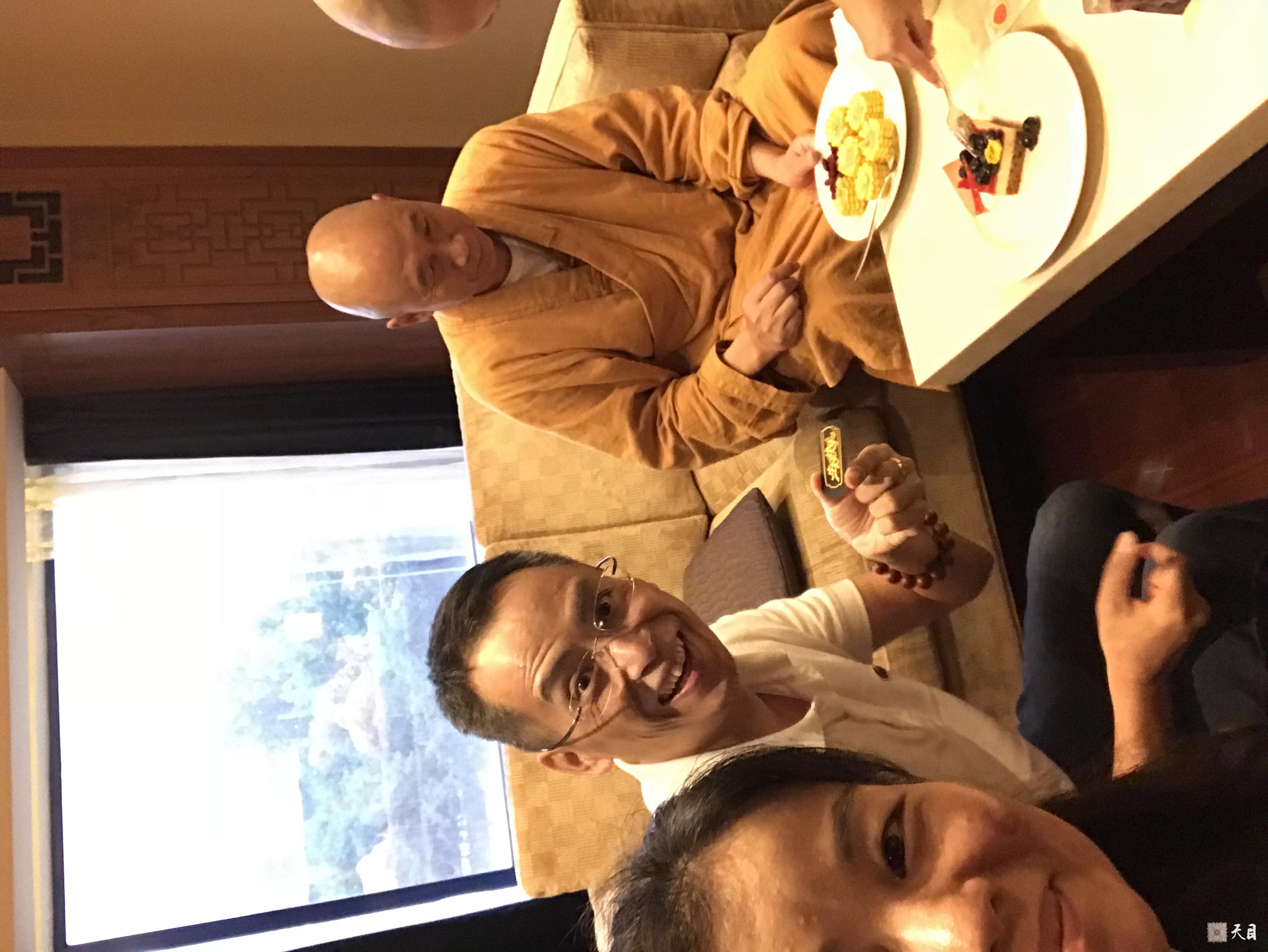 2018年6月25日,恩师圣观法师带领果实法师、常香法师、常彩居士、常顺居士、果静居士在西安喜来登给心宁居士庆祝生日。