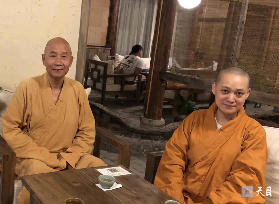 图为恩师圣观法师和果实法师在西安素心茶房合影。