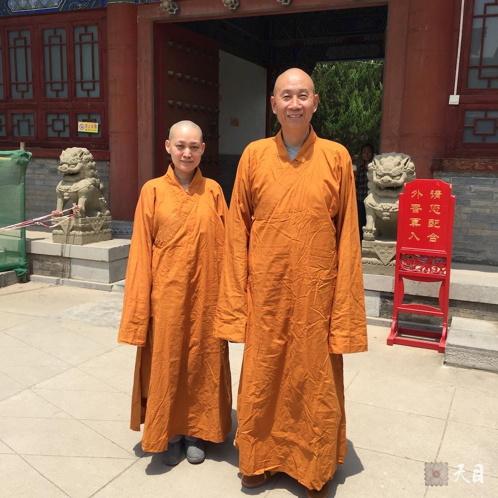 图一:恩师圣观法师和果实法师在大兴善寺天王殿东侧金刚门合影;