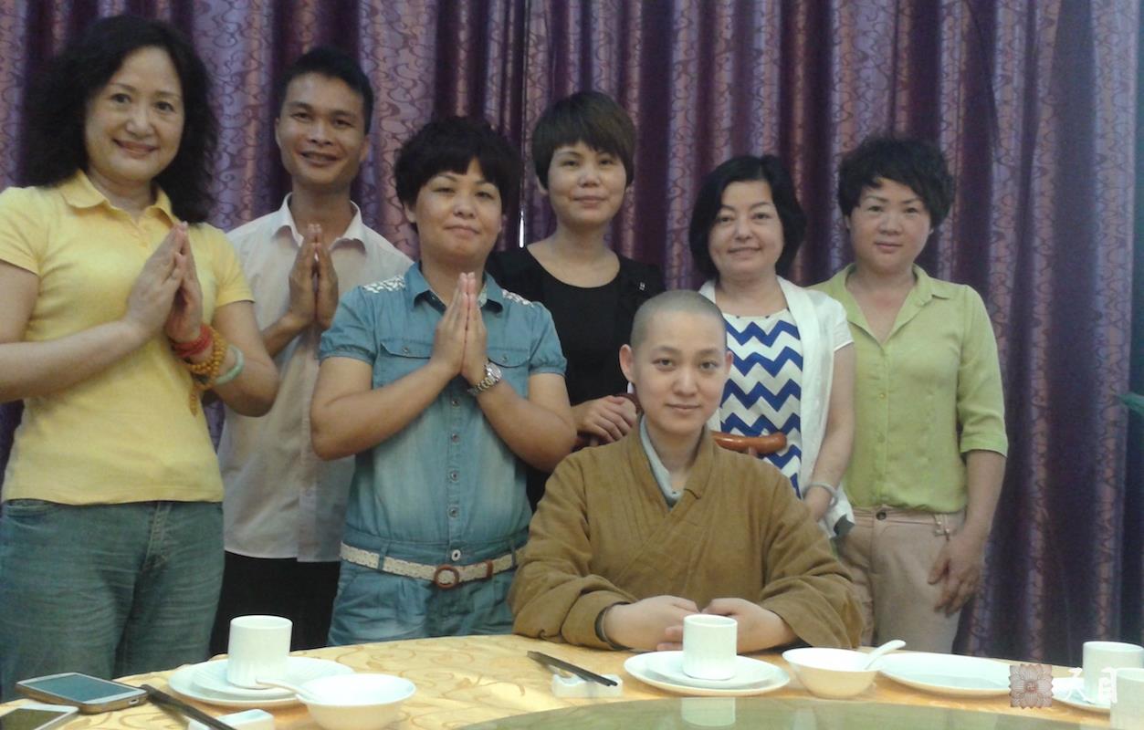 下午,果实法师在广州莲慈素食馆的佛堂,给常喜居士举行皈依仪式,常升居士、常彩居士、常芳居士、常柔居士、常兴居士前来随喜,并齐聚在恩师主要弘法道场之一的莲慈素食馆吃饭,常喜居士做功德主。