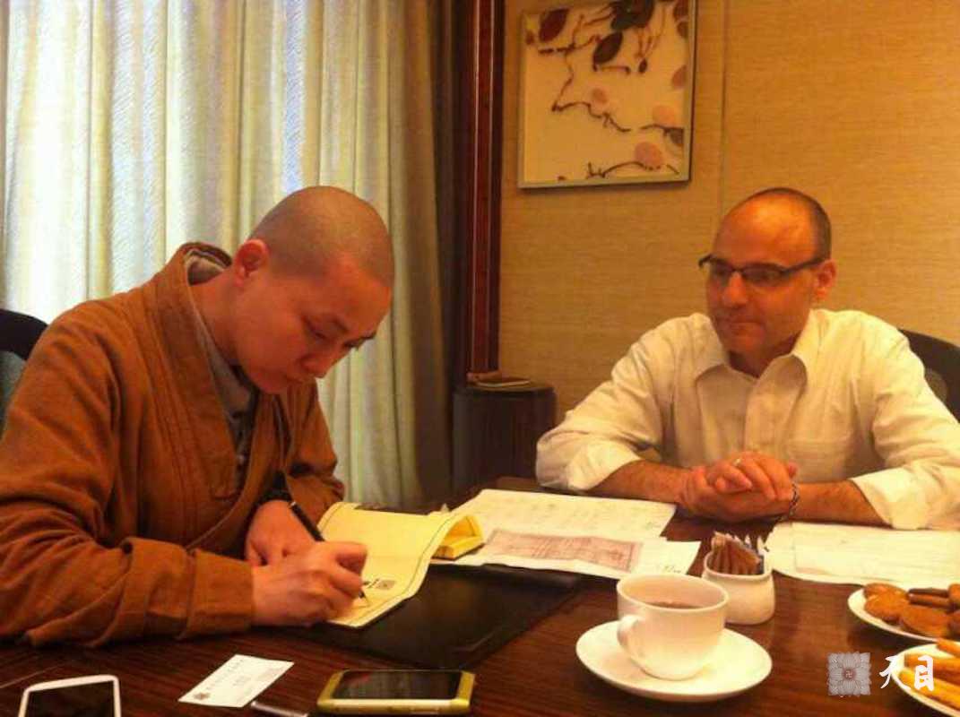 20140613果实法师在广州香格里拉豪华阁会议室,给广州的美国驻华领事包德宝先生讲佛法。