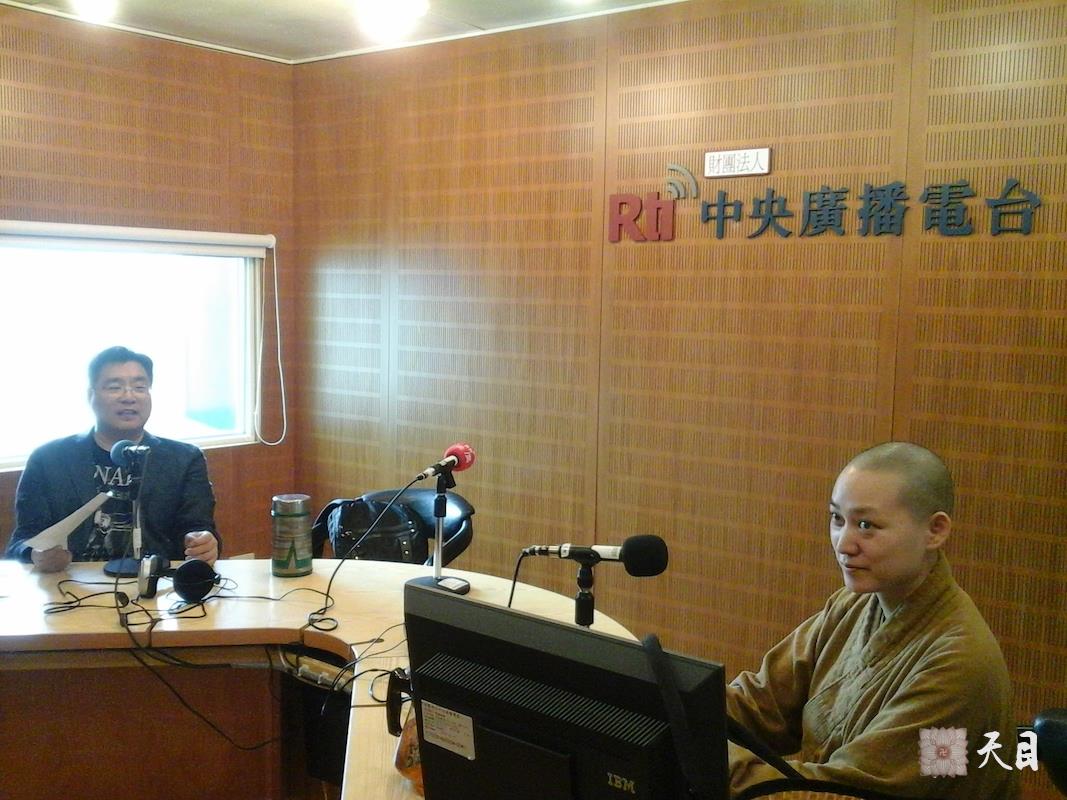 20140722果实法师在台湾云游期间,在天女邱玉琦居士的护持下来到中央广播电台。