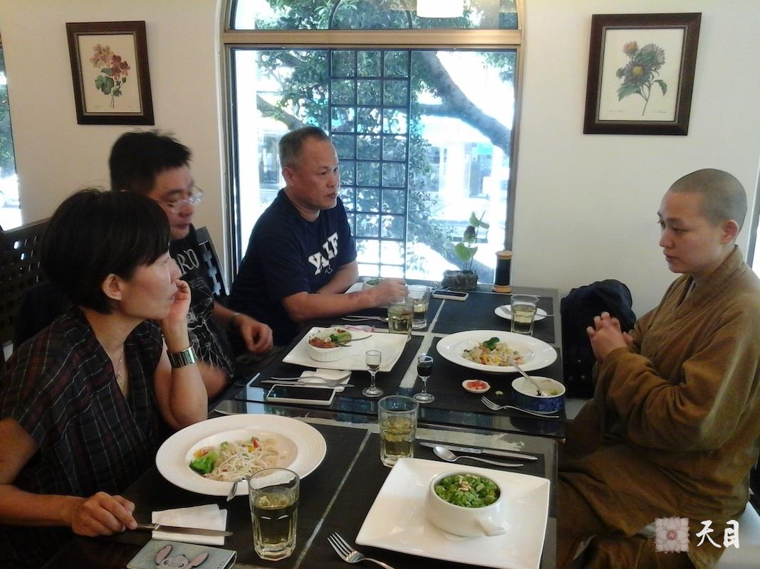 20140722果实法师在台湾云游期间,应杨宪宏的供养,和金柯美珍居士夫妇、天女邱玉琦居士一起在台北香积厨素食馆吃饭。