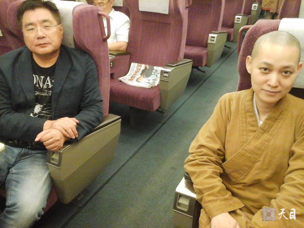20140722果实法师在天女邱玉琦的护持下,乘坐台北到桃园的高铁,到弘誓学院拜访昭慧法师。