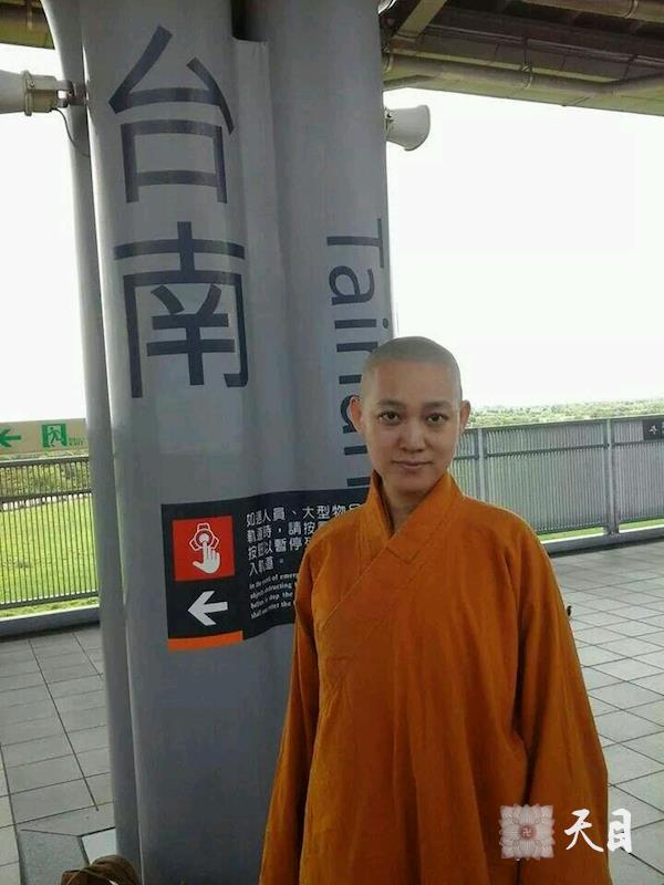 20140726果实法师在台湾云游期间,在天女邱玉琦护持下,乘坐台北到台南的高铁,果芳居士来到台南高铁站,驾车护送果实法师和天女邱玉琦居士,到高雄佛光山给恩师圣观法师祈福。