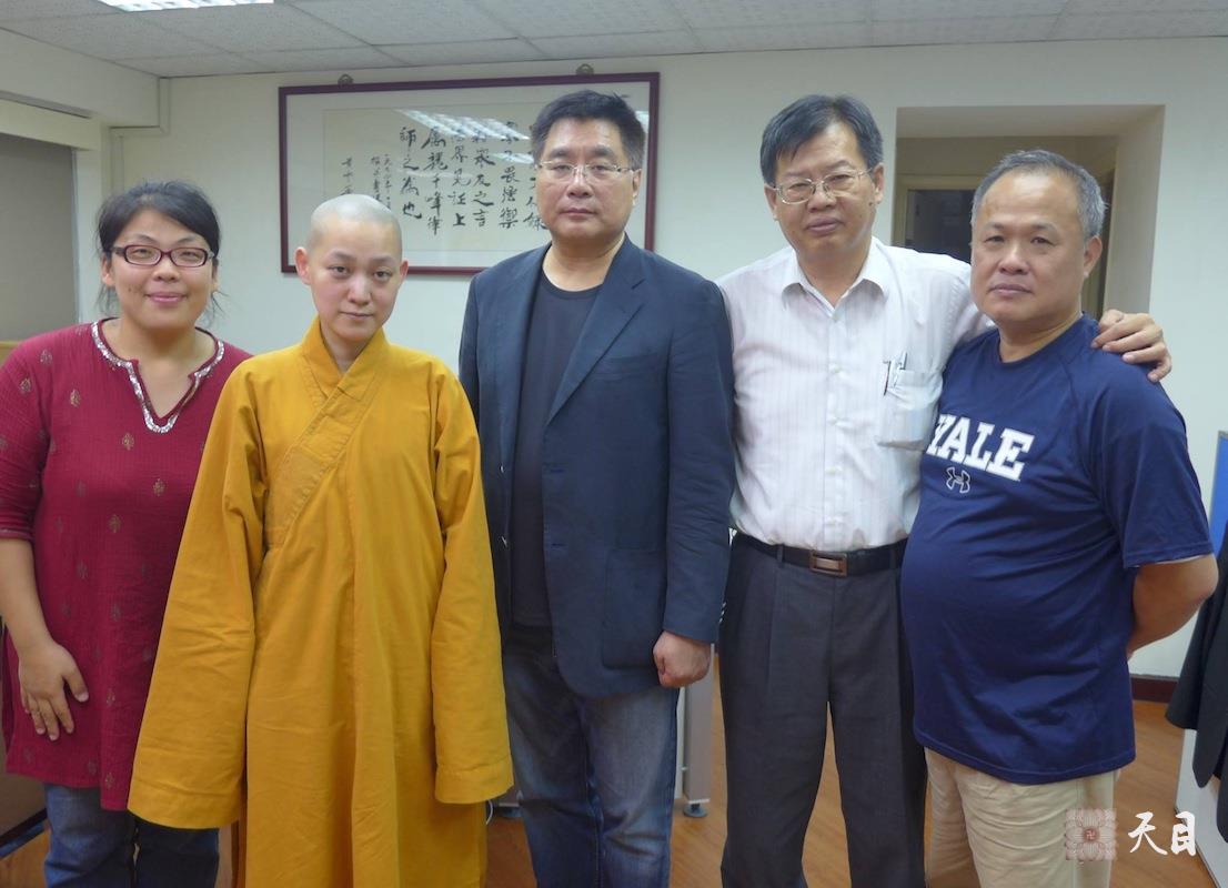20140729果实法师离开台湾前一天,与魏千峯律师、杨宪宏先生、金柯居士、天女邱玉琦居士、果芳居士齐聚在魏千峯律师台北的律师事务所。
