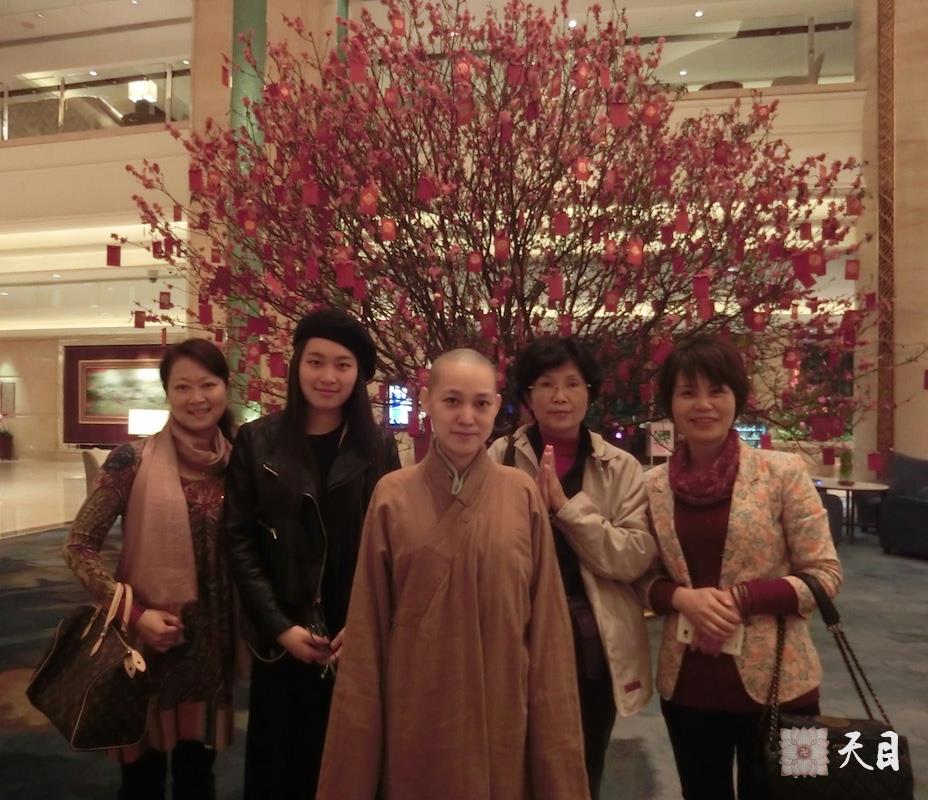 20150219果实法师在农历新年初一,与常彩居士、果芳居士、果珍居士、常戒居士在广州香格里拉给恩师圣观法师祈福。