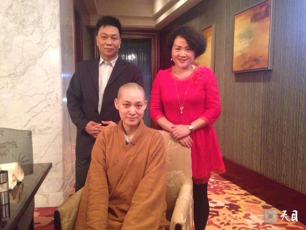 图为果实法师和常芳演晟居士夫妇在广州香格里拉的合影。