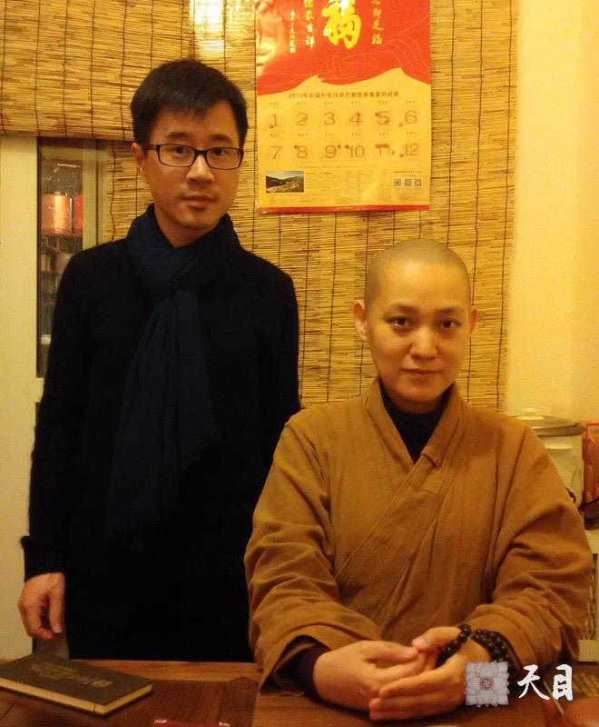 图为果实法师在皈依仪式完毕后,和常慧居士在常顺阁茶行的合影。