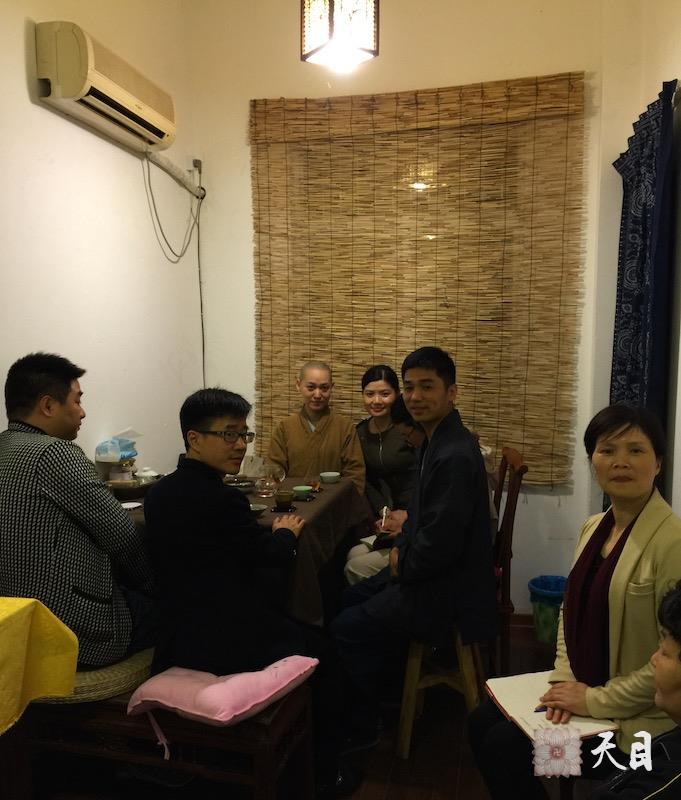 20150424果实法师在温州弘法期间,在常珍轩素食馆应供,饭毕,在常顺阁茶行给信众开示。