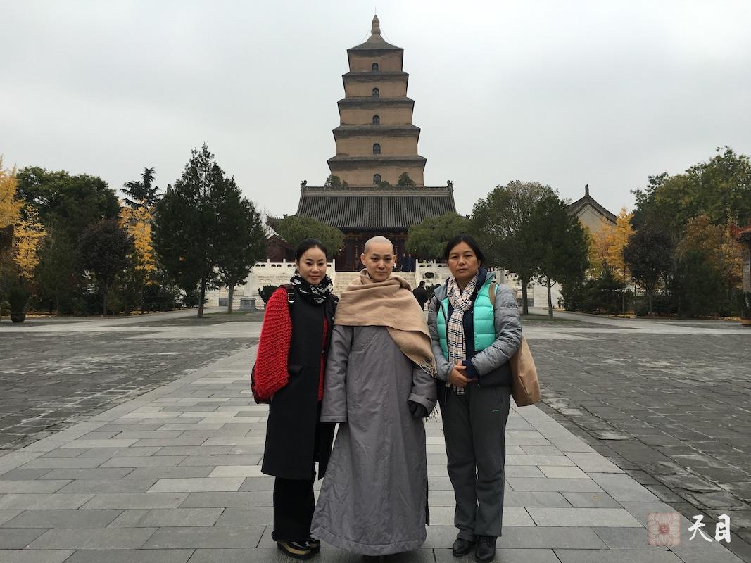 果实法师领常意居士、常顺居士到西安大慈恩寺参学、瞻仰西安大雁塔。