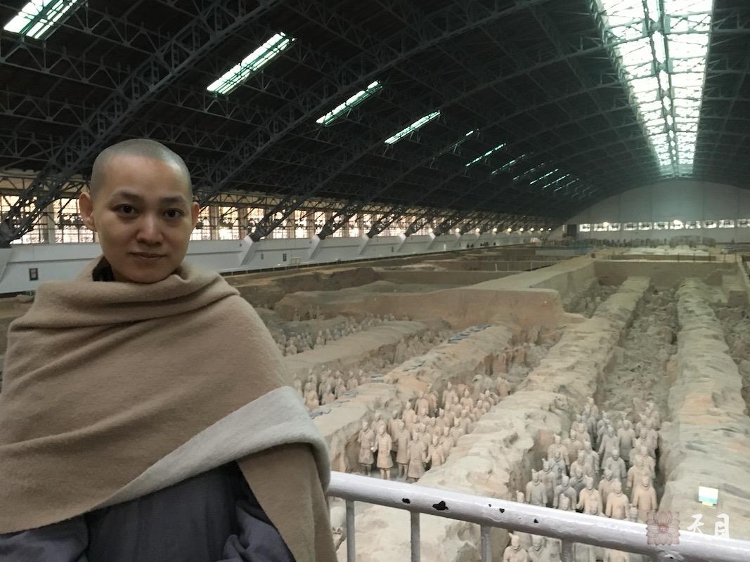 果实法师在常意居士的护持下,参观秦始皇兵马俑博物馆。