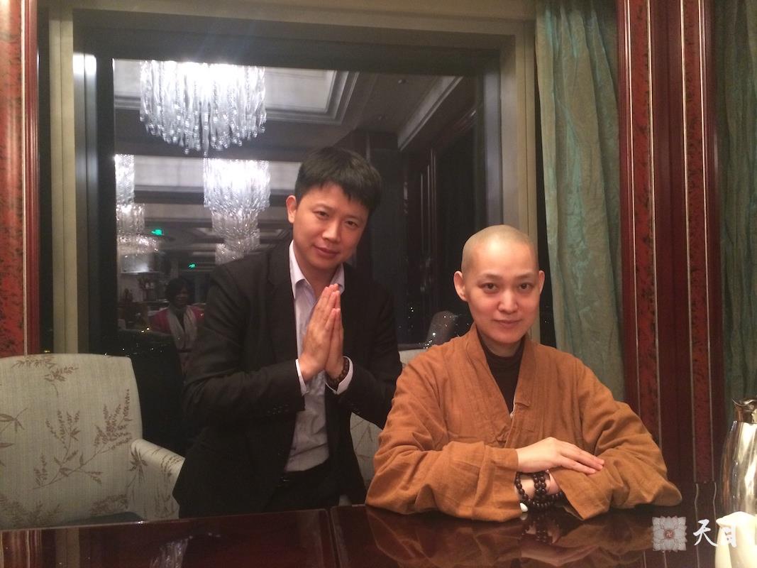 图为果实法师和常信居士在广州香格里拉的合影。