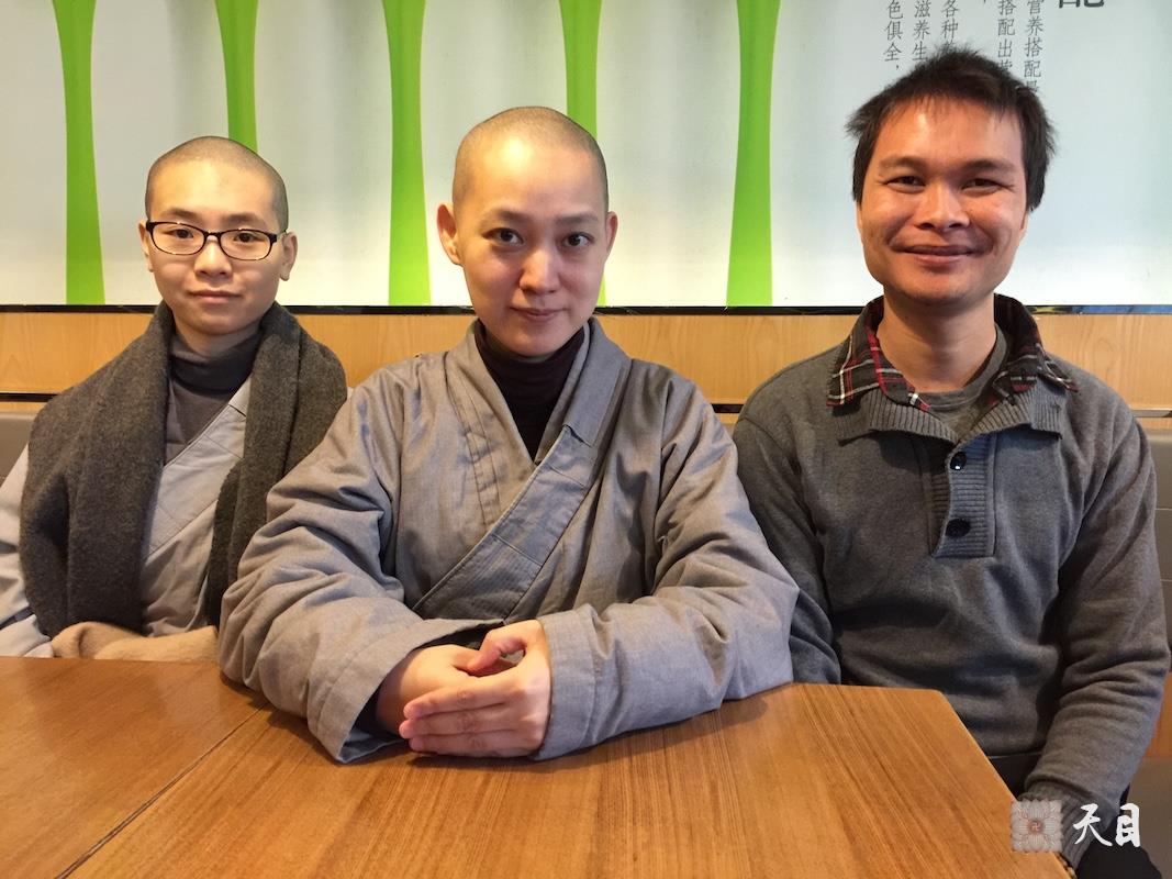 图为果实法师和常香法师、常兴居士在一天一素素食馆的合影。