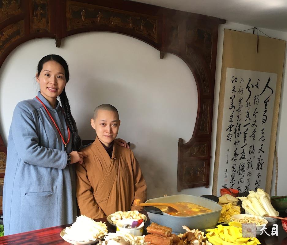 20151228果实法师在温州弘法期间,应常见居士谢芳夫妇的供养,在常见居士温州的中和茶坊品茶,打火锅。