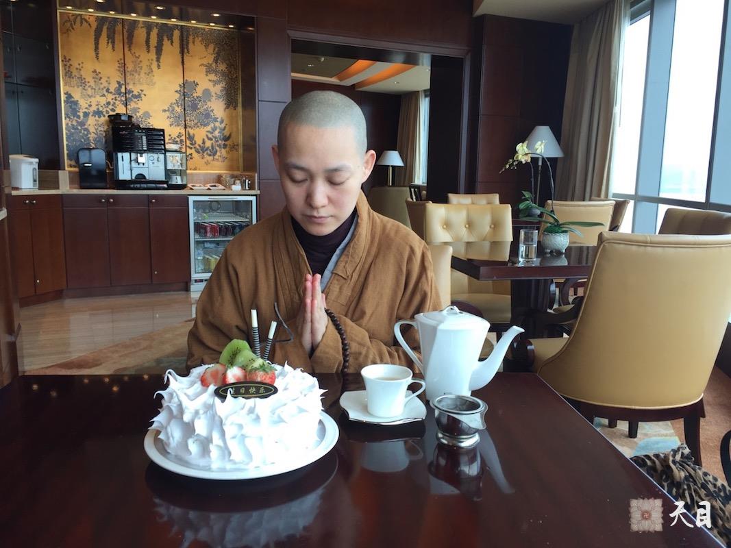 20160112果实法师在温州弘法期间,正值果实法师生日,信众发心供养果实法师鲜花、茶饼,或在家里供养果实法师斋饭,常珍居士更是亲力亲为,准备了好多精美素菜,邀请数十名信众前来常珍轩素食馆,一起给果实法师庆祝生日。