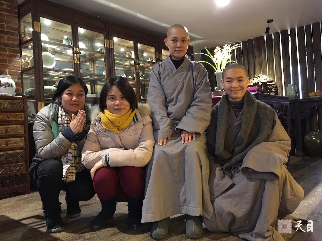 图为果实法师和常香法师、常彩居士、常顺居士在中和茶坊的合影。