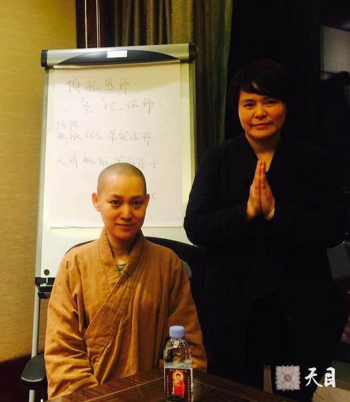 20160325果实法师在广州弘法期间,常妙居士专程从浙江丽水前来亲近果实法师,礼请果实法师皈依三宝。