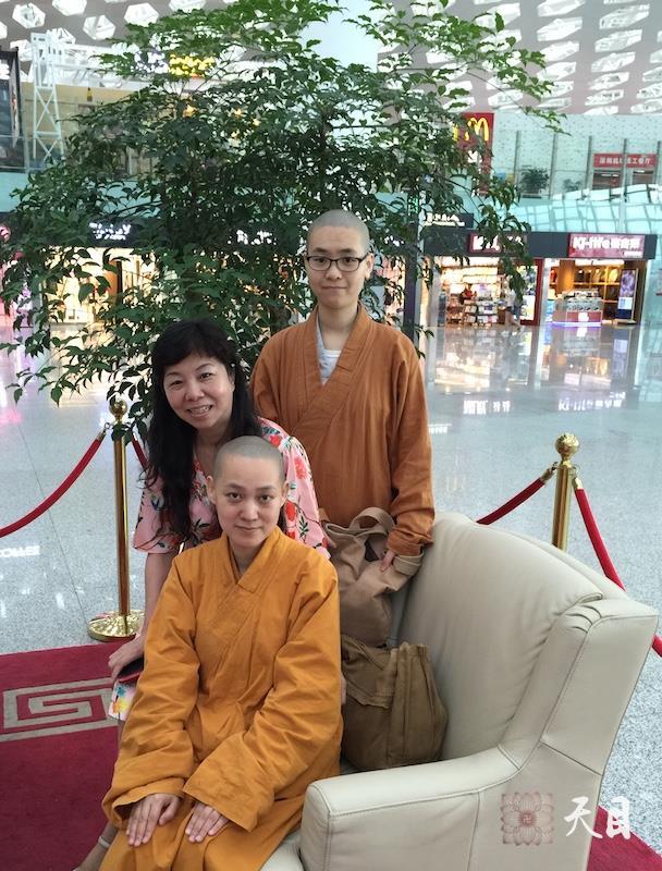 图为果实法师和常香法师、常贤居士在深圳机场的合影。
