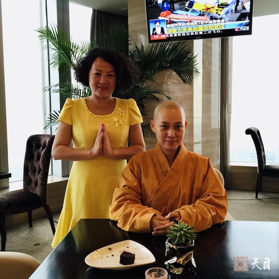图为果实法师和常芳居士在广州广交会威斯汀的合影。