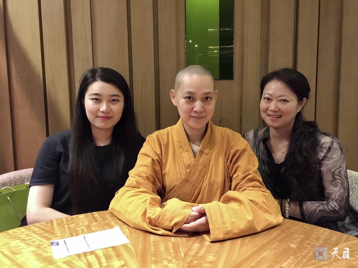 图为果实法师和果珍居士、常戒居士在广州天河雅乐轩的合影。