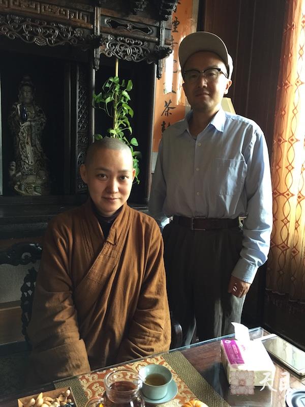图为果实法师和常星居士在北京露雨轩茶馆的合影。