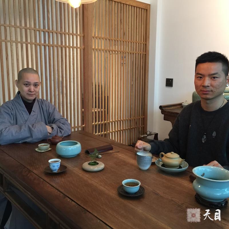 图为果实法师和常清居士在清风轩茶馆的合影。