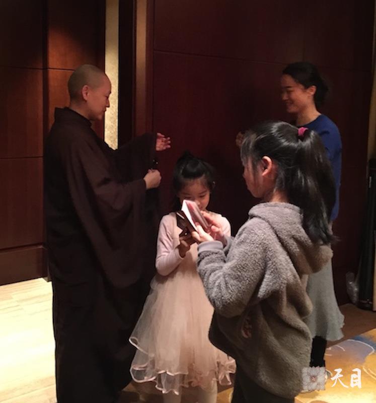 20180325果实法师在温州弘法期间,常莉居士、常帅居士、常俊居士前来亲近果实法师,礼请果实法师皈依三宝。
