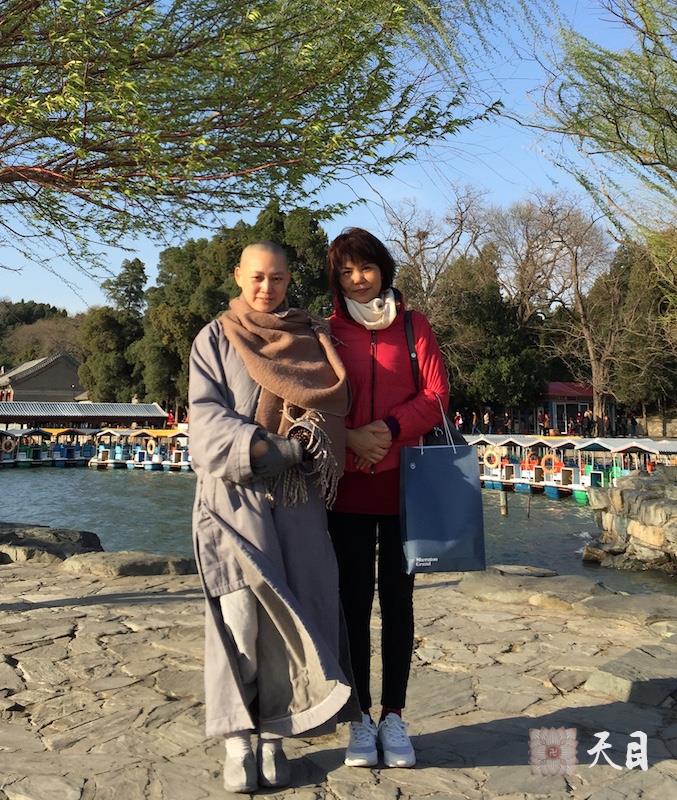 20180406果实法师在北京弘法期间,应常星张星水居士的供养,和常彩居士同游颐和园,一起给恩师圣观法师祈福!