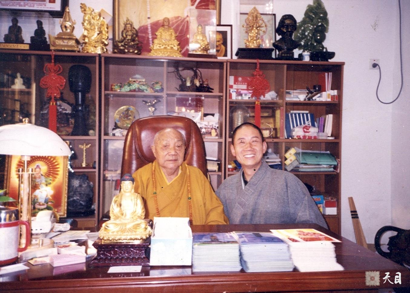 图为2005年2月恩师圣观法师和本焕长老在深圳弘法寺合影。