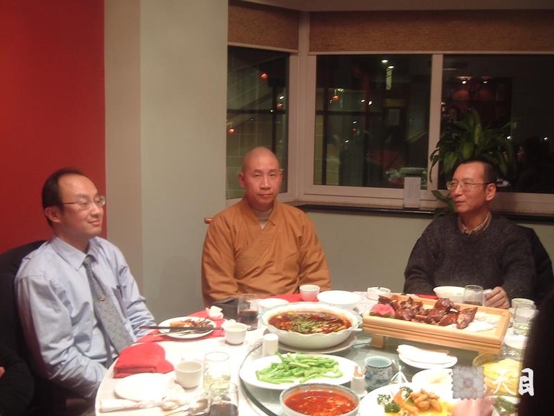 恩师圣观法师这种大慈悲大智慧,大无畏的精神、恩师圣观法师的忍辱与坚定,一顿饭下来,深深地撼动了在场的每个人。诚然,这是一场常星张星水居士特意为恩师圣观法师解救果实居士而安排的饭局,恩师圣观法师给众生充分表了法,给大家种下了菩提的种子;在尽虚空遍法界中,回向加持着还在受难的果实居士,让果实居士得以早日重获自由(还毫不知情的果实居士就在这天2007年1月26日被允许出院、被家人接回家中禁锢,仍未获得自由,但起码已离开精神病院了。而后继续仰仗恩师圣观法师,果实居士在2007年2月11日得到恩师的法律顾问黄雪涛律师的帮助,从家中成功出走,终于彻底逃离魔窟重获自由。)