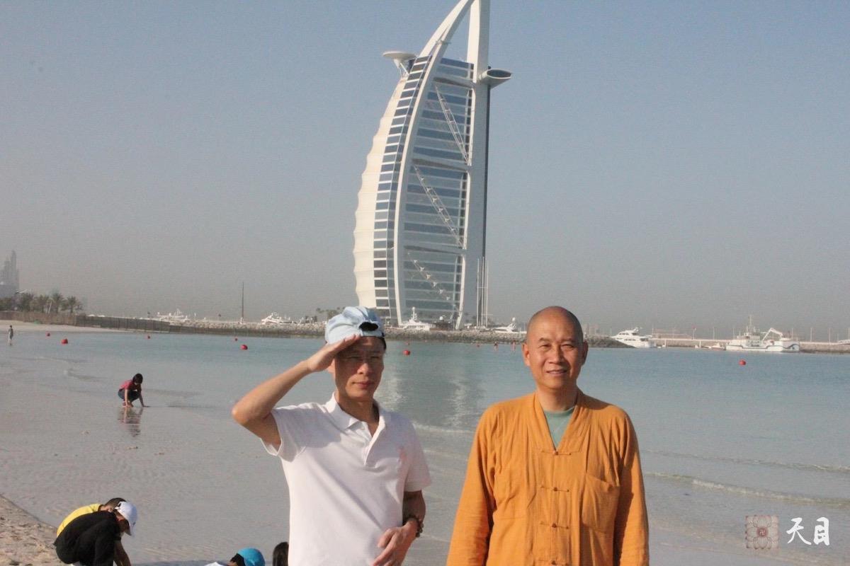 2012年10月2日,恩师圣观法师应心敬、果贞、心平、大安居士合家供养同游迪拜参观迪拜阿拉伯塔帆船(Burj Al Arab)酒店。