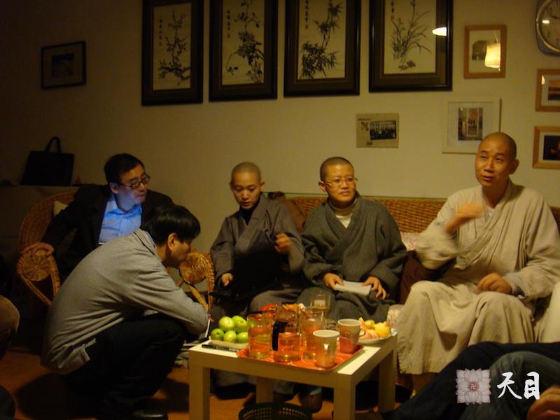 20080223圣观法师带领果实法师妙觉法师和唐荆陵在艾晓明家参加聚会2