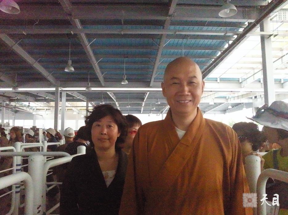 图一为恩师圣观法师在上海世博会检票处和常阳居士合影。