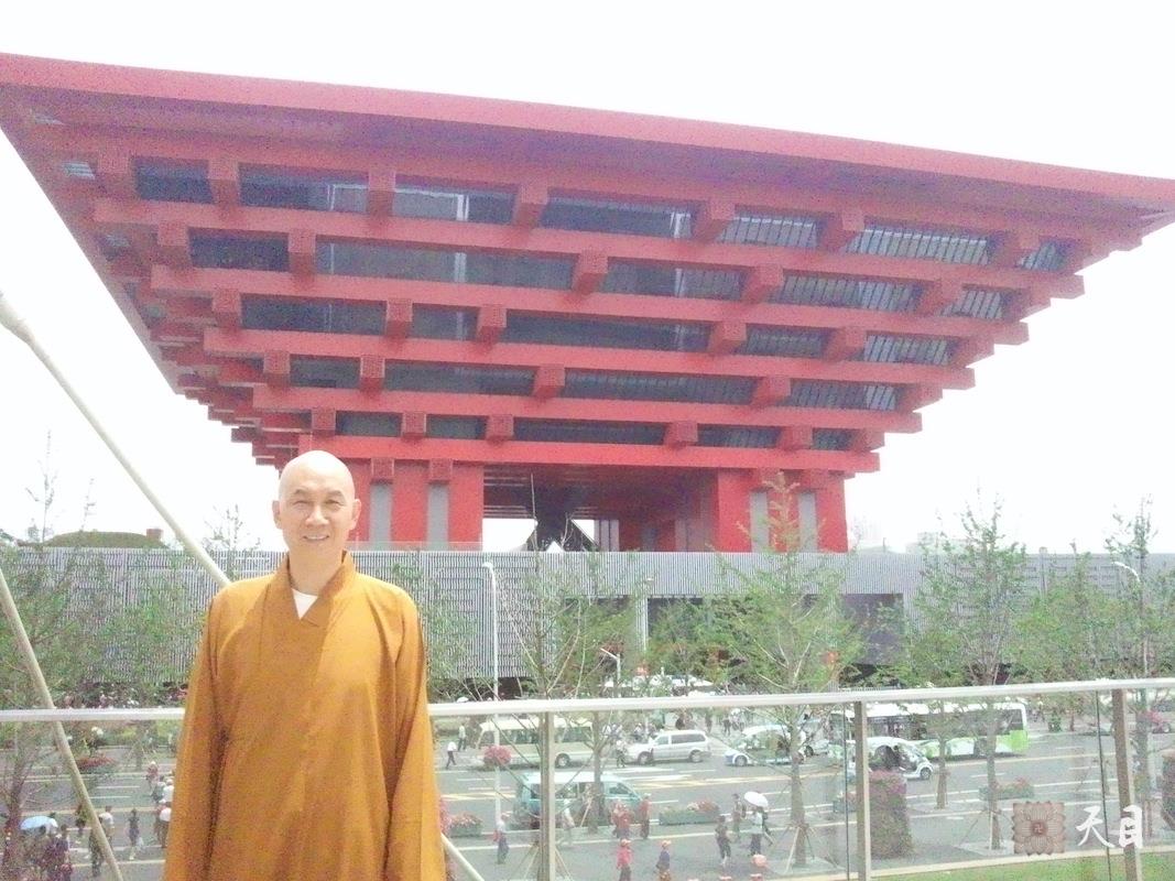 2010年5月26日,恩师圣观法师在上海弘法期间,带领果实法师游览上海世博会,常阳居士做护法。