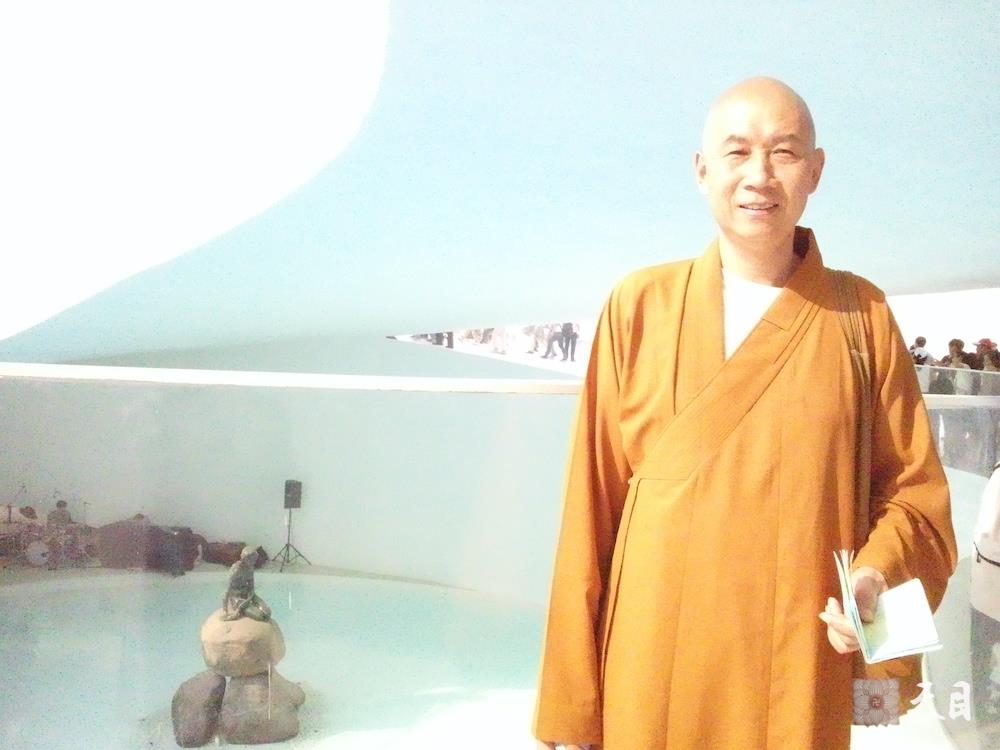 2010年5月26日,恩师圣观法师在上海弘法期间,带领果实法师游览上海世博会,常阳居士做护法。