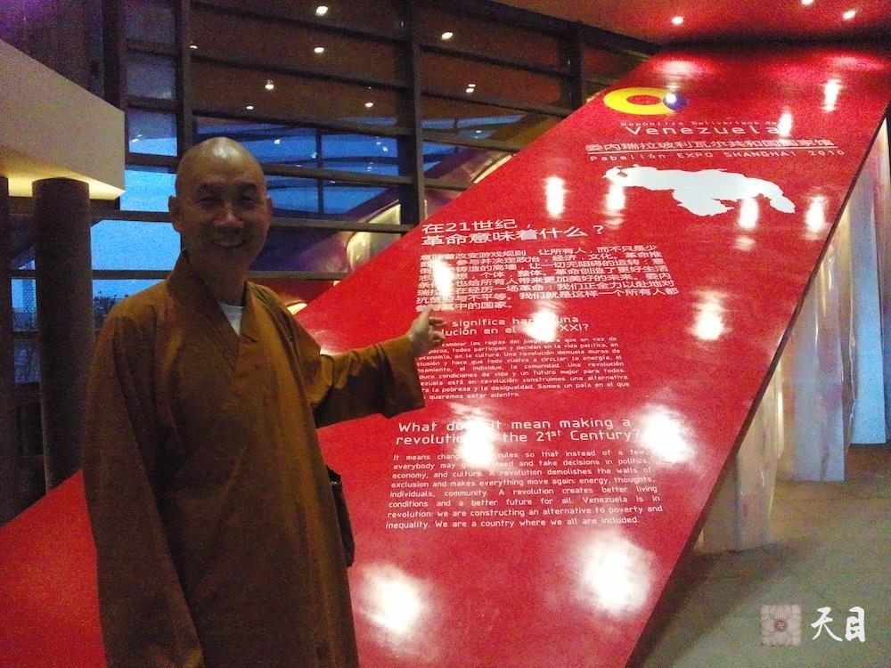 图为恩师圣观法师在上海世博会委内瑞拉馆留影。