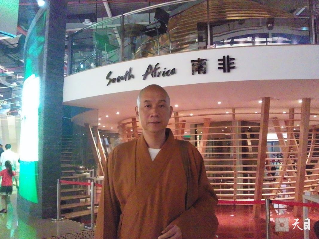 图一:恩师圣观法师在上海世博会南非馆留影;