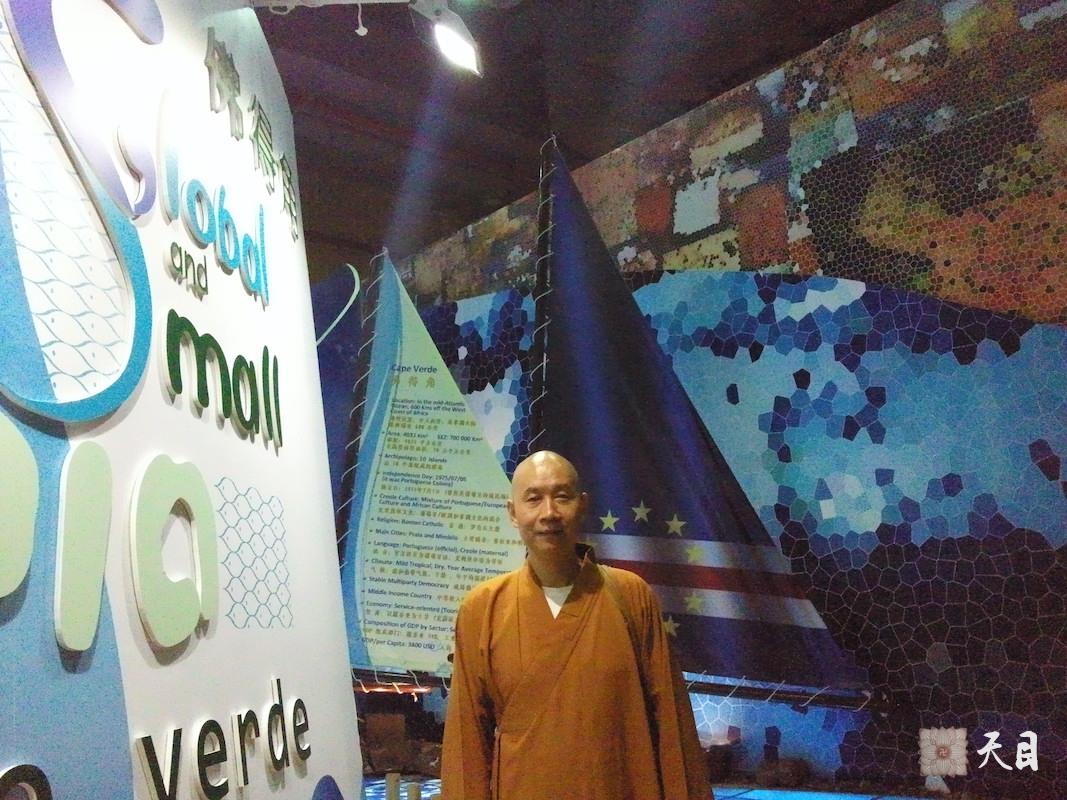 图为恩师圣观法师在上海世博会佛得角馆留影。