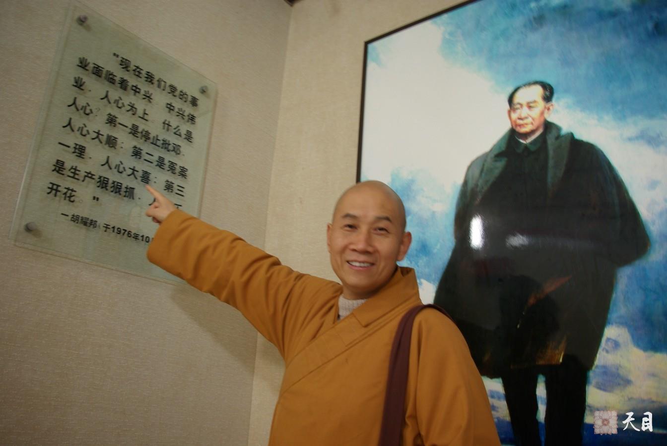 2009年3月11日,恩师圣观法师到江西九江共青城富华山瞻仰胡耀邦陵园,向胡耀邦墓碑敬献花篮,并参观胡耀邦事迹陈列馆。