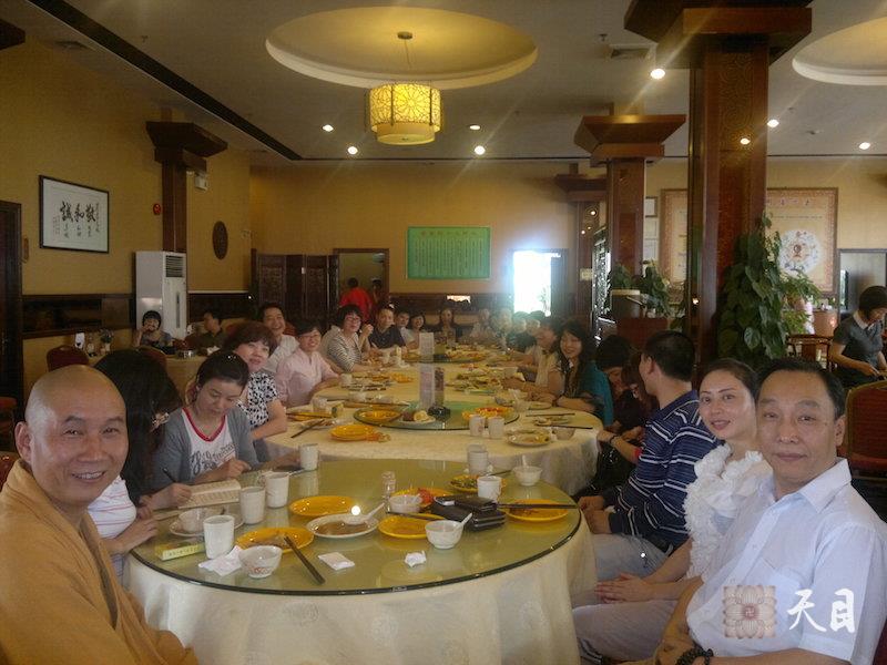 2011年4月21日,恩师圣观法师驻锡广州马赛精舍期间,应果愿居士的请求,在广州莲慈素食馆参加果愿居士的生日会,与一同前来参加的莲慈素食老板也是马赛精舍的功德主张建鹏居士、数十名信众合影。