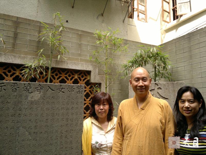 2011年4月24日,恩师圣观法师驻锡广州马赛精舍期间,和果信居士、常阳居士在广州海幢寺内的一石碑前合影。