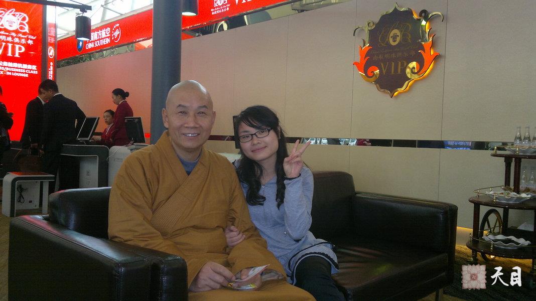 2011年12月9日,恩师圣观法师应邀去温州弘法,果嘉居士给恩师圣观法师送行,至广州白云机场南航服务厅时,果嘉居士请求与恩师圣观法师合影。